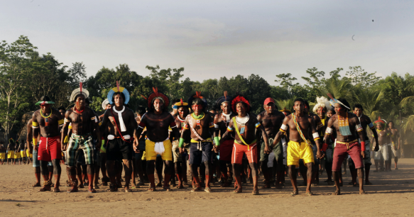 O termo Kayapó (às vezes também "kayapó" ou "caiapó") foi usado pela primeira vez no início do século XIX. Os próprios Kayapó não se referem a si mesmos pelo termo usado pelos grupos vizinhos para se referir a eles, que significa “semelhante a macaco”, provavelmente devido a um ritual em que os homens Kayapó se vestem de macacos durante várias semanas. máscaras, faça danças curtas. Embora saibam que outros os chamam assim, os Kayapó se autodenominam Mebêngôkre, “homens do poço/lugar” .